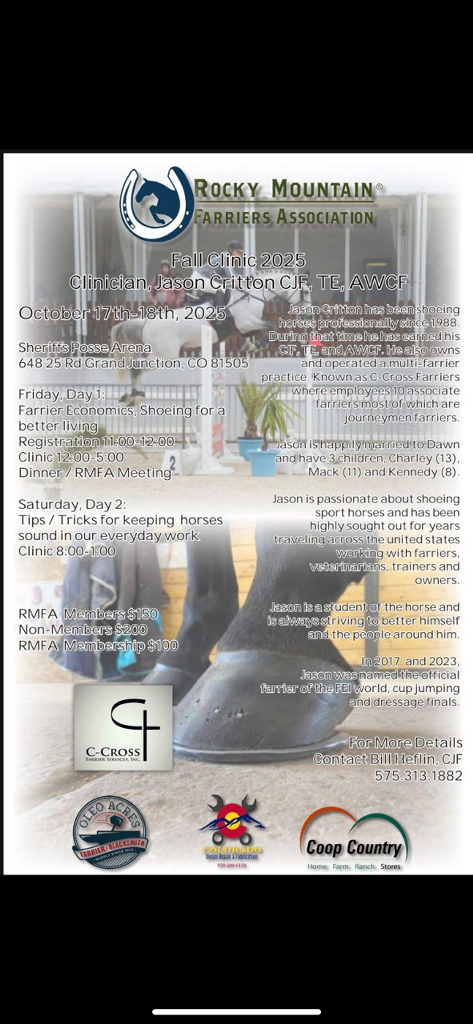Rocky Mountain Farriers Association Fall Clinic 2025 (10 CE)